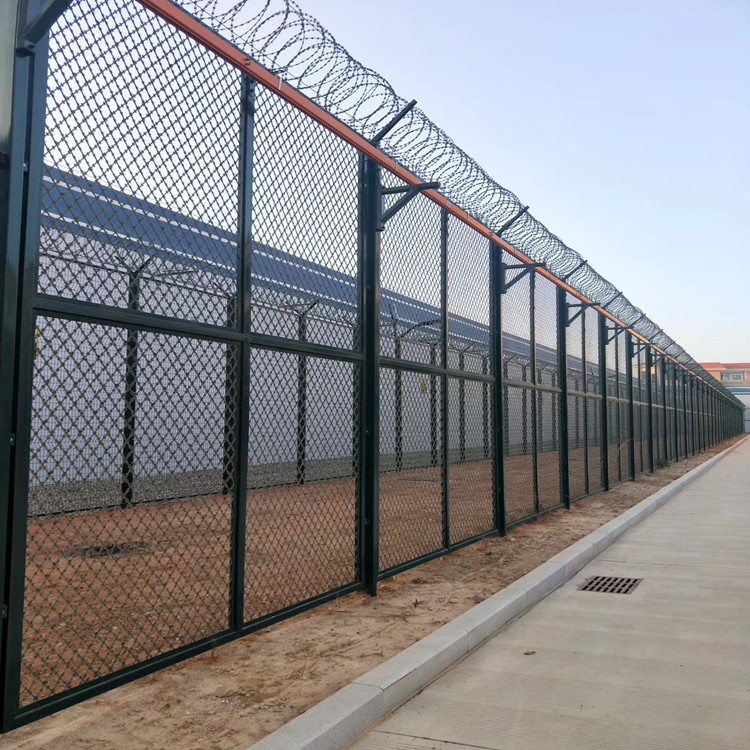 2監獄鋼網墻一般使用熱鍍鋅 鋼絲焊接或鋼絲焊接后鍍鋅再做涂塑處理,達到雙重防腐。
