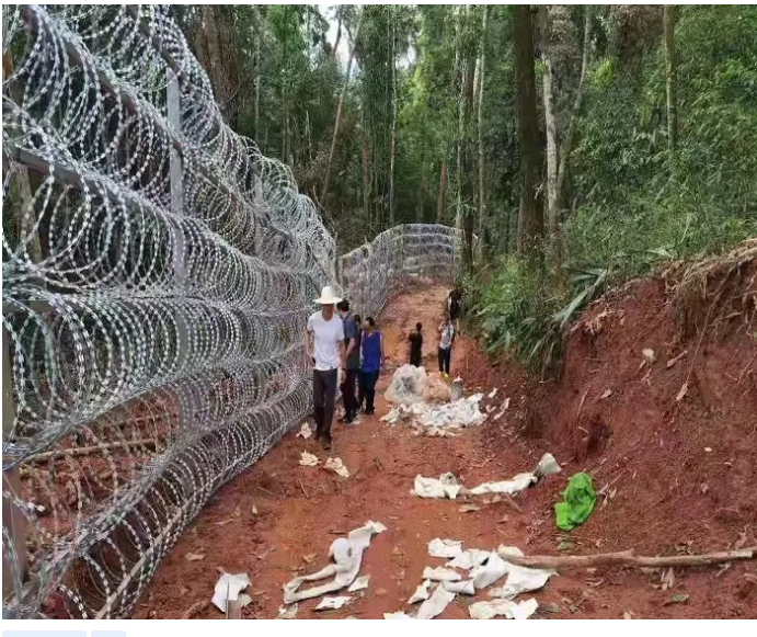 云南邊境防疫鋼鐵長城采用蛇腹型刀片鐵絲網(wǎng),刀片剌網(wǎng)又名刮刀型刺絲,是一種發(fā)展起來的防護(hù)、隔離能力較強(qiáng)的新型防護(hù)網(wǎng)產(chǎn)品。鋒利的刀型刺由雙線扣裝后成蛇腹?fàn)?既美觀又讓人不寒而栗。起到了很好的阻嚇作用。同時(shí)該產(chǎn)品具有美觀、防阻效果好、施工便利等優(yōu)點(diǎn)。
