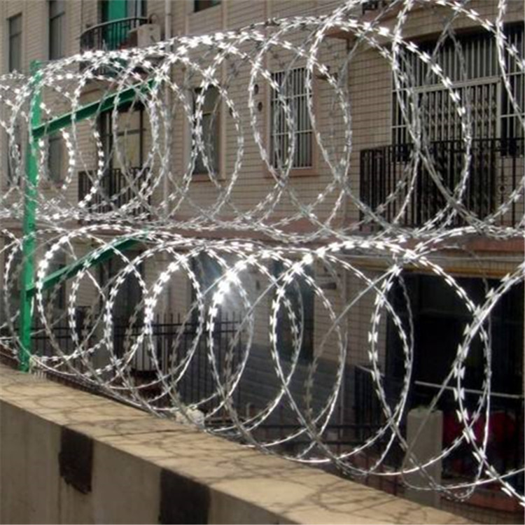 刀刺網(wǎng)在監(jiān)獄鋼網(wǎng)墻產(chǎn)品中有著至關重要的作用,它是具有尖利的刀片,共同的造型,像一條占據(jù)的大蛇,因此又稱刀片刺繩為蛇腹形刀刺網(wǎng),只需不小心碰到就會被尖利的刀片劃傷,環(huán)能握,腳不能攀爬,成為堅決阻撓不合法分子逾越的防護墻,具有很強的恫嚇和阻撓作用,既漂又有十分實踐明顯的作用。